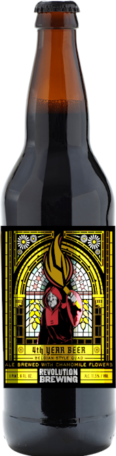 Our 4th Year Beer, or “Quadruple," is inspired by the traditional Trappist strong ales produced in the abbey breweries of Belgium. Brewed with Pilsner, Munich, and Caramunich malts, the resulting beer has a deep chestnut hue. Rich flavors and aromas of fresh bread, dark fruits, honey and brown sugar are up front with the Belgian yeast strain contributing a punch of spice and fruity esters wafting up with every sip. German Magnum and Cascade hops impart an earthy, spicy hop character. Hops are definitely not the star of the show here - just enough bitterness and flavor to ensure balance in the finished product. Dextrose and dark Belgian candi sugar boost the sugar concentration and impart a dried fruit character to this huge ale. Chamomile flowers to add to the complex aromas we have already imparted. We are serving this beer in a 10 oz. tulip not only for presentation purposes, but more so for the sensory evaluation potential. Such a complex beer as this needs to be swirled and then have the shape of the glass allow you to take in all the wonderful aromas that are released.