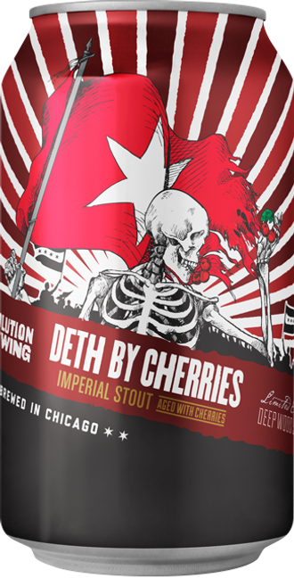 Unfermented tart cherries add a mild acidity and subtly rounding sweetness to our Deth’s Tar Barrel-Aged Imperial Oatmeal Stout. Flavors and aromas of bourbon and oak meld harmoniously with the fruit, each balancing the other. Enjoy now or store cold.