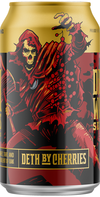 Unfermented sweet and tart cherries complement a dry-leaning combination of Deth’s Tar Barrel-Aged Imperial Oatmeal Stout barrels in this classically-satisfying blend of blends. The pair of fruits harmonize with the occurring aromatics of American oak and focus the immensity of flavors of the stout with judiciously metered acidity.