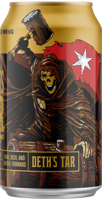 A prolonged repose in bourbon-soaked American oak barrels adorns a dark chocolate profile with notes of toasted coconut and vanilla. A rich, supple texture belies the unholy power of our Imperial Oatmeal Stout.