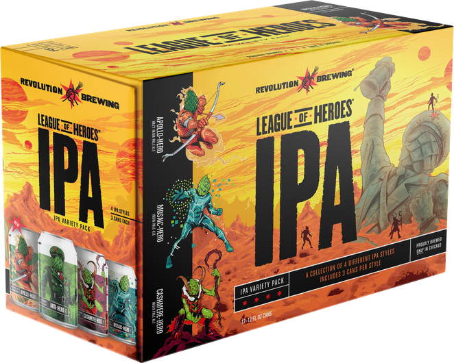 When the enemy is gaining strength and a single Hero can't fight the battle alone, Anti-Hero assembles the League of Heroes. Each "Issue" of the variety 12-pack contains 4 unique IPAs, 3 cans of each, with at least one new Hero making his or her first appearance. Bring the hop battle to your fridge by comparing and contrasting innovative hop profiles, canned within days of each other. New issues will be released approximately 3 times per year.