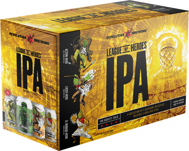 Each member of the League of Heroes is canned within days of each other, with the born-on-date of the oldest can stamped on the box. The team at Revolution Brewing packages the Leagues of Heroes multiple times per month to ensure maximum freshness.