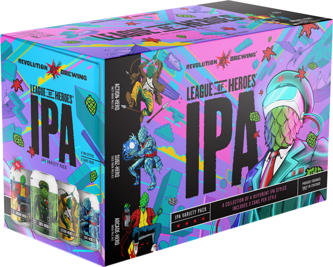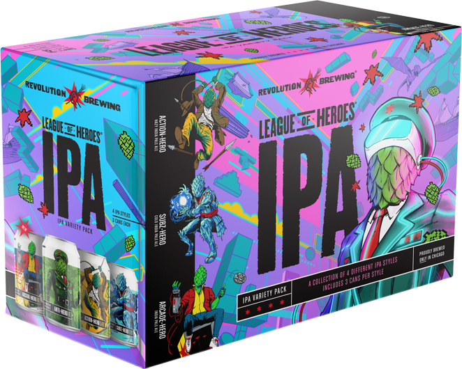 Each member of the League of Heroes is canned within days of each other, with the born-on-date of the oldest can stamped on the box. The team at Revolution Brewing packages the Leagues of Heroes multiple times per month to ensure maximum freshness.
