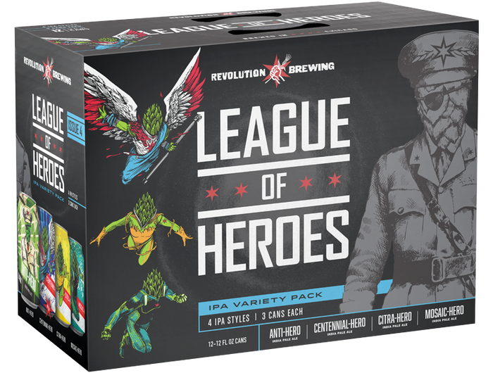 When the enemy is gaining strength and a single Hero can't fight the battle alone, Anti-Hero assembles the League of Heroes. Each "Issue" of the variety 12-pack contains 4 unique IPAs, 3 cans of each, with at least one new Hero making his or her first appearance. Bring the hop battle to your fridge by comparing and contrasting innovative hop profiles, canned within days of each other. New issues will be released approximately 3 times per year.