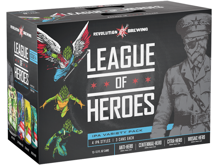 Each member of the League of Heroes is canned within days of each other, with the born-on-date of the oldest can stamped on the box. The team at Revolution Brewing packages the Leagues of Heroes multiple times per month to ensure maximum freshness.