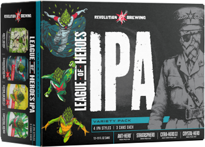 Each member of the League of Heroes is canned within days of each other, with the born-on-date of the oldest can stamped on the box. The team at Revolution Brewing packages the Leagues of Heroes multiple times per month to ensure maximum freshness.