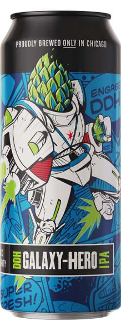 Galaxy-Hero enters the cosmic hop singularity and emerges with a shimmering haze and a double raygun blast of Galaxy, Citra, Amarillo, Simcoe, and BRU1. Six pounds per barrel of dry hopping explode into a juicy constellation of tropical fruit and citrus notes. A balanced, refreshing finish keeps you coming back for yet another trip into awe-inspiring orbit.