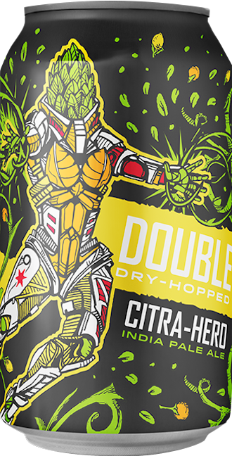 Citra-Hero® is powering up with the double dry hop suit, blasting forth more citrus-edged hop impact. Fueled by classic American hops and the latest in advanced hop products, two rounds of dry hops unleash a staggering five pounds of Citra®, Motueka, Moasic, Simcoe, and Kohatu per barrel. Melon, citrus, and tropical fruit flavors explode all the way through a smooth, dry finish.