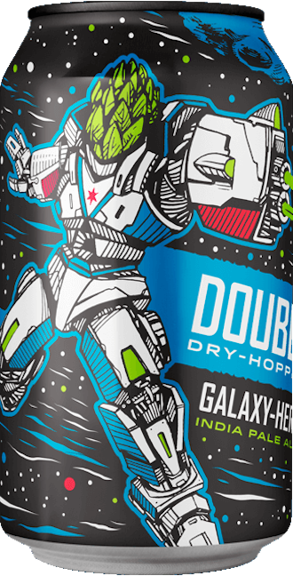 Galaxy Hero is brewed using a blend of 2-row, Amber and Aromatic malts to achieve a deep golden color and toasted malt character. Apollo and Centennial hops are used in the brewhouse for a clean punch of bitterness and citrus character. Now it is time to discuss the dry-hop step and it’s where things really get interesting! The true meaning of the “Double Dry-Hop” is not taking the normal dry-hop rate of Galaxy Hero up from 1 lb. to 2 lb. per Barrel. Nope. We up the rate to 5 lb. per Barrel to a total of 1,100 lbs. of Galaxy and Centennial adding the 1st half on Day#5 and the 2nd half on Day#6 of fermentation! So it’s really 4 times the amount of hop pellets added on 2 separate days. This massive infusion of hop material imparts distinctive aromas and flavors of tropical fruit, fresh cut herbs and grated citrus zest.