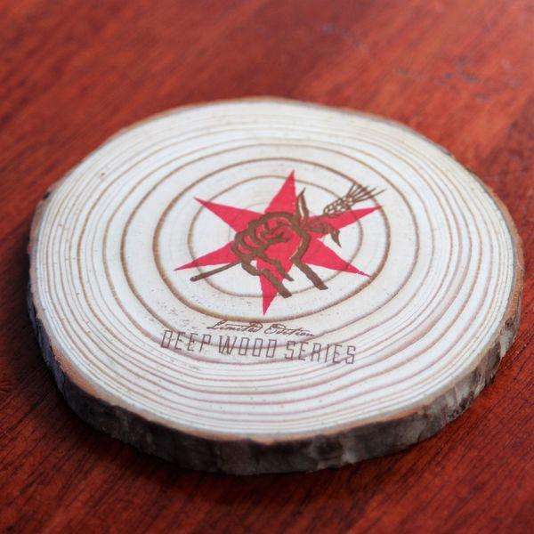 Wooden coasters featuring our Star and Fist and Deep Wood Series logo. Set of 4 for $10.