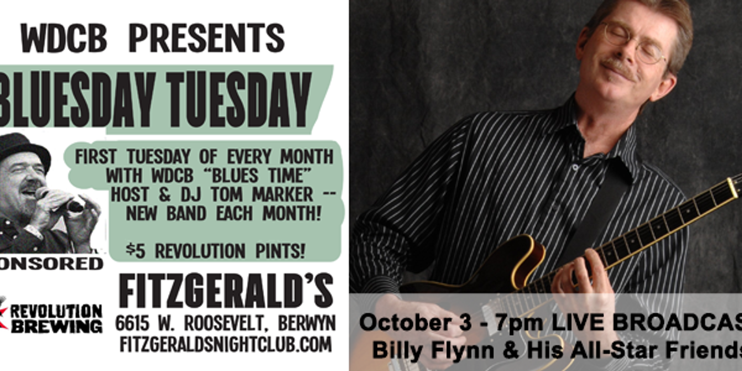 Enjoy Revolution Brewing specials while you jam out to some live blues music featuring Billy Flynn and His All-Star Friends.