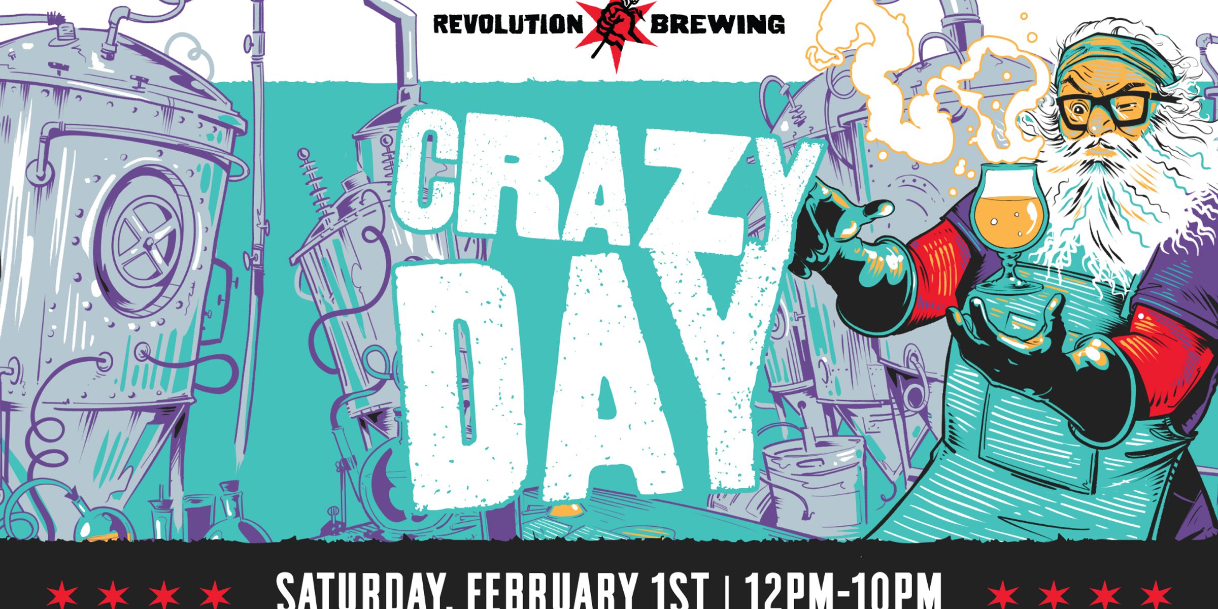 Dry January is over, it’s time to get A Little Crazy! On February 1st, we’ll be celebrating the return of our beloved belgo-style pale ale with a party featuring a unique draft variant, specials, vendors, and more! Order a pour of A Little Crazy and keep the limited-edition beaker glass, or take home an entire case of cans for just $30. Try a glass of A Little Crazier, our double dry-hopped draft variant. All specials are while supplies last, so come by early, enjoy some food from Papa’s Chicago and dessert from Carina’s Cupcakery, watch our curated mad science movie playlist, and ring in your February in the warmth of the Revolution Taproom.