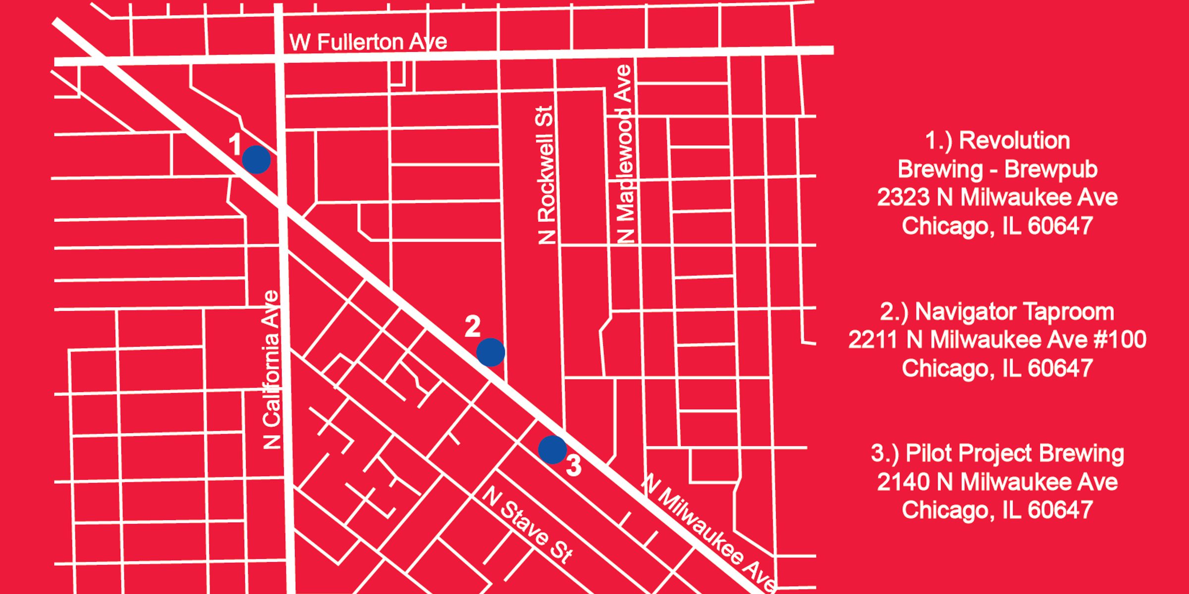 - Revolution Brewing: 2323 N Milwaukee Ave, Chicago, IL 60647