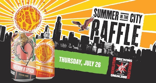 Summer in the city is hard to beat, especially when it’s paired with good beer. Join us on Thursday, July 26, as we celebrate summertime with a series of Rev Raffle Nights throughout our markets. Events will feature two of our easy-drinking summer brews: Freedom of Speach and Sun Crusher. Raffle prizes include Revolution branded grills, coolers, chairs, towels, and other rad Rev swag. Join us at a location near you: