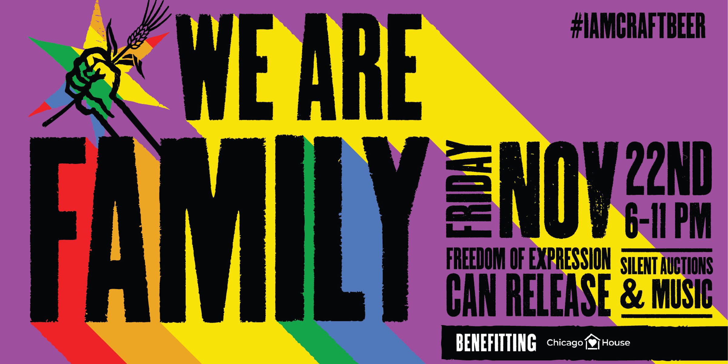 Join the Rev Brew Crew for the second edition of our annual We Are Family party. In addition to music and an impressive list of silent auction items, this year’s party will feature the release of Freedom of Expression. This strawberry and rhubarb version of our popular Session Sour series will not only be on draft, but available in four-packs of 16 oz. cans to take home. 100% of all Freedom of Expression draft pours AND four-pack sales from the event will be donated to Chicago House and Social Service Agency.