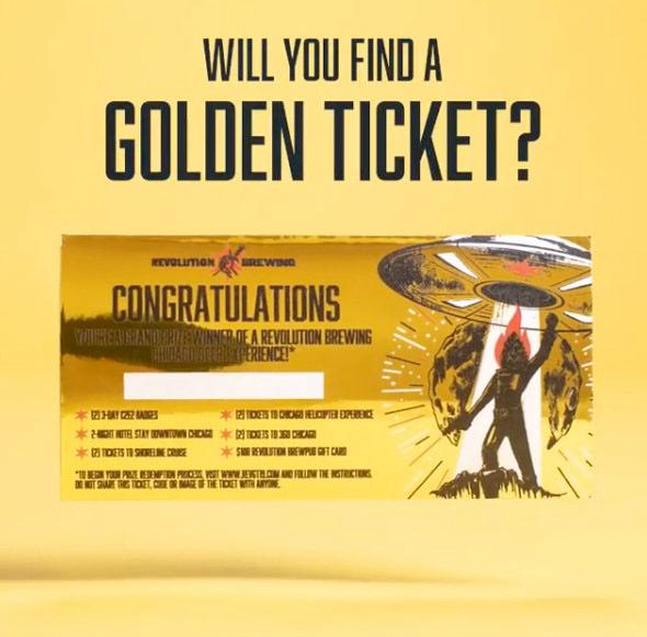 - Didn't find a winning Golden Ticket? There's still a chance to win other cool Revolution Brewing Promotional Items and be entered into (1) Chicago Beer Experience Weekend raffle on February 28, 2019. Text LEAGUEOFHEROES to 24587 or visit www.RevBrewSweeps.com to enter for a chance to win.