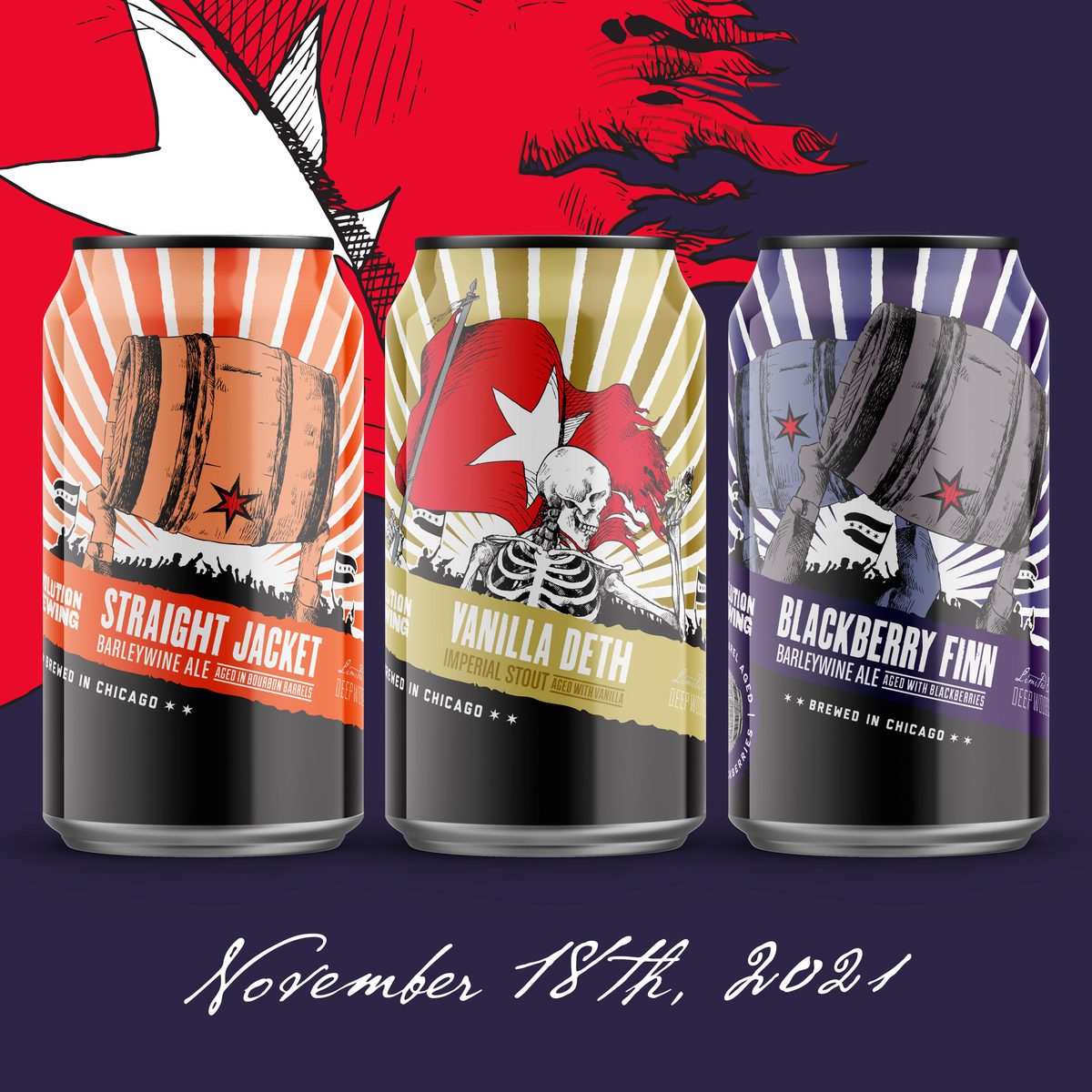 Enjoy a taste of November's Deep Wood Series release featuring Straight Jacket, Vanilla Deth and Blackberry Finn starting November 18th at select accounts. Read More »